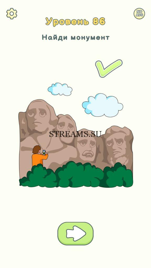 Найди монумент. Уровень 86 — DOP 2: Delete One Part. Вы готовы к продолжению первой части игры? Тогда вперед! Эта игра DOP 2 (Расшифровка: Delete One Part) , которая отличается от первой части тем, что здесь нам нужно будет не дорисовывать предметы, а удалять или стирать их. Вас ждет множество хитроумных и интересных уровней. На первом этапе нам будут подсказывать, что нужно удали, но потом становится всё тяжелее и тяжелее решать головоломки. Разработчики постарались сделать игру привлекательной. Геймплей заставит вас просидеть за игрой очень долго. Красивая графика исполнения. Тренировка мозга и многое другое, всё это ждет нас в замечательной головоломке DOP 2. Если не получается пройти уровень, или зашли в тупик, то вы можете найти ответ на любой уровень на нашем сайте STREAMS.SU! Ответ на этот уровень находиться чуть ниже..