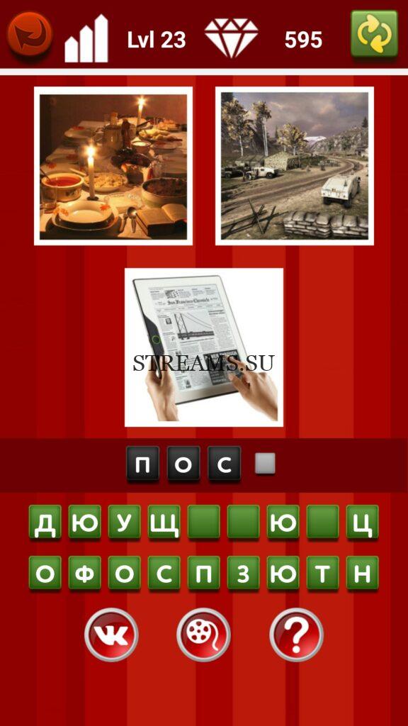 Найди общее. Уровень 23 — Где логика? — игра, которая потребует от вас максимальной сосредоточенности и внимательности. Пока что в игре существует 3 раздела. Найди общее — здесь предоставляется 3 картинки и предстоит находить, что же среди них общее, что их объединяет. С каждым последующим уровнем сложность игры будет возрастать. Поэтому приготовьтесь напрягать свой мозг всё лучше и лучше. Подмечайте какие-то малозначительные вещи. В них может крыться ответ. Чего не хватает — в этом разделе на одной фотографии предстоит найти, что забыли нарисовать или что убрали с фото. Это не всегда будет очевидно. Два в одном — здесь нужно вглядываться в фото звезд кино, чтобы найти в их лицах 2-х актеров. Вообщем игра требует внимательности и логика. На нашем сайте вы найдете все ответы на уровни этой занимательной игры!