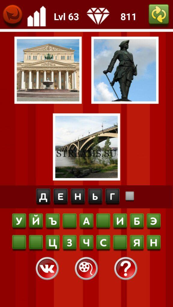 Найди общее. Уровень 63 — Где логика? — игра, которая потребует от вас максимальной сосредоточенности и внимательности. Пока что в игре существует 3 раздела. Найди общее — здесь предоставляется 3 картинки и предстоит находить, что же среди них общее, что их объединяет. С каждым последующим уровнем сложность игры будет возрастать. Поэтому приготовьтесь напрягать свой мозг всё лучше и лучше. Подмечайте какие-то малозначительные вещи. В них может крыться ответ. Чего не хватает — в этом разделе на одной фотографии предстоит найти, что забыли нарисовать или что убрали с фото. Это не всегда будет очевидно. Два в одном — здесь нужно вглядываться в фото звезд кино, чтобы найти в их лицах 2-х актеров. Вообщем игра требует внимательности и логика. На нашем сайте вы найдете все ответы на уровни этой занимательной игры!