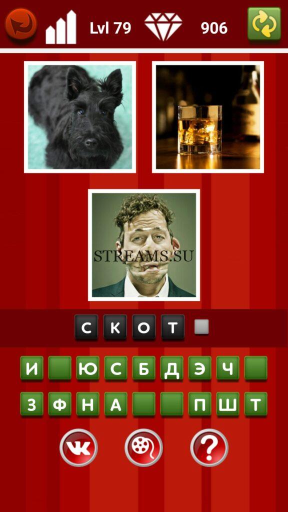 Найди общее. Уровень 79 — Где логика? — игра, которая потребует от вас максимальной сосредоточенности и внимательности. Пока что в игре существует 3 раздела. Найди общее — здесь предоставляется 3 картинки и предстоит находить, что же среди них общее, что их объединяет. С каждым последующим уровнем сложность игры будет возрастать. Поэтому приготовьтесь напрягать свой мозг всё лучше и лучше. Подмечайте какие-то малозначительные вещи. В них может крыться ответ. Чего не хватает — в этом разделе на одной фотографии предстоит найти, что забыли нарисовать или что убрали с фото. Это не всегда будет очевидно. Два в одном — здесь нужно вглядываться в фото звезд кино, чтобы найти в их лицах 2-х актеров. Вообщем игра требует внимательности и логика. На нашем сайте вы найдете все ответы на уровни этой занимательной игры!