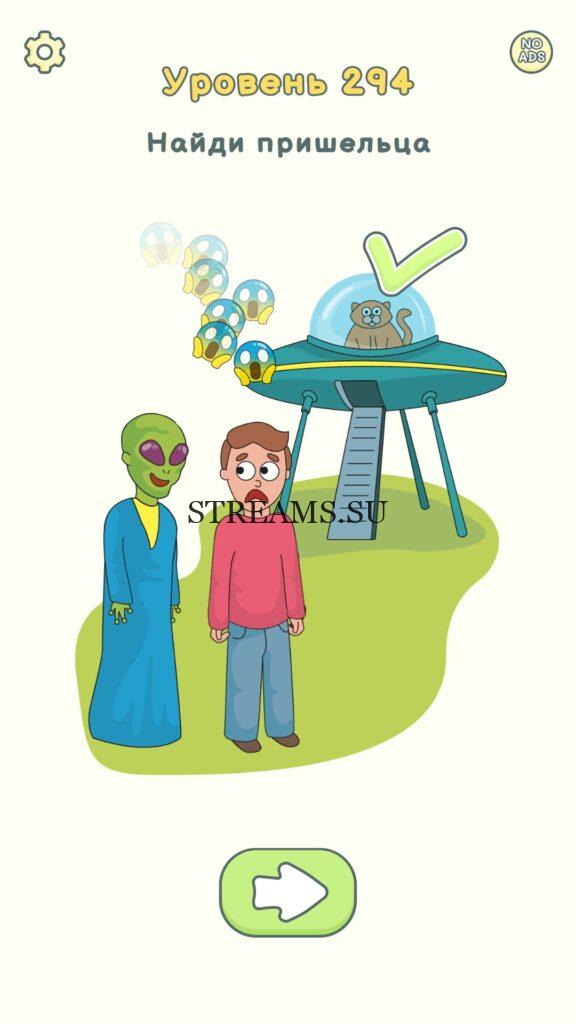 Найди пришельца. Уровень 294 — DOP 2: Delete One Part. Вы готовы к продолжению первой части игры? Тогда вперед! Эта игра DOP 2 (Расшифровка: Delete One Part) , которая отличается от первой части тем, что здесь нам нужно будет не дорисовывать предметы, а удалять или стирать их. Вас ждет множество хитроумных и интересных уровней. На первом этапе нам будут подсказывать, что нужно удали, но потом становится всё тяжелее и тяжелее решать головоломки. Разработчики постарались сделать игру привлекательной. Геймплей заставит вас просидеть за игрой очень долго. Красивая графика исполнения. Тренировка мозга и многое другое, всё это ждет нас в замечательной головоломке DOP 2. Если не получается пройти уровень, или зашли в тупик, то вы можете найти ответ на любой уровень на нашем сайте STREAMS.SU! Ответ на этот уровень находиться чуть ниже..