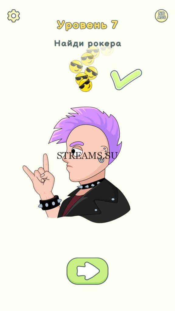 Найди рокера. Уровень 7 — DOP 2: Delete One Part. Вы готовы к продолжению первой части игры? Тогда вперед! Эта игра DOP 2 (Расшифровка: Delete One Part) , которая отличается от первой части тем, что здесь нам нужно будет не дорисовывать предметы, а удалять или стирать их. Вас ждет множество хитроумных и интересных уровней. На первом этапе нам будут подсказывать, что нужно удали, но потом становится всё тяжелее и тяжелее решать головоломки. Разработчики постарались сделать игру привлекательной. Геймплей заставит вас просидеть за игрой очень долго. Красивая графика исполнения. Тренировка мозга и многое другое, всё это ждет нас в замечательной головоломке DOP 2. Если не получается пройти уровень, или зашли в тупик, то вы можете найти ответ на любой уровень на нашем сайте STREAMS.SU! Ответ на этот уровень находиться чуть ниже..