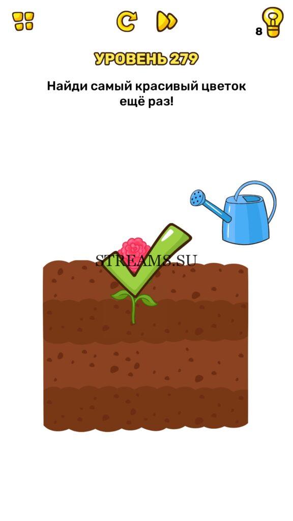 Найди самый красивый цветок ещё раз! Уровень 279 — Brain Blow: Тест на гениальность — Ответ на этот уровень находится под фото. Очередная игра от популярных разработчиков головоломок CASUAL AZUR GAMES. Если вы хотите взорвать свой мозг и развить навыки нестандартного мышления, тогда игра Брейн Блоу определенно вам понравится. Если не получается решить задание, то попробуйте включить нестандартное мышление, тряхнуть телефон, погладить его или использовать больше пальцев. Эта игра способна развить в вас навыки следопыта, креативность и прокачать ваш IQ. Но, а если все-же не получается пройти уровень, найдите правильное решение на нашем сайте.