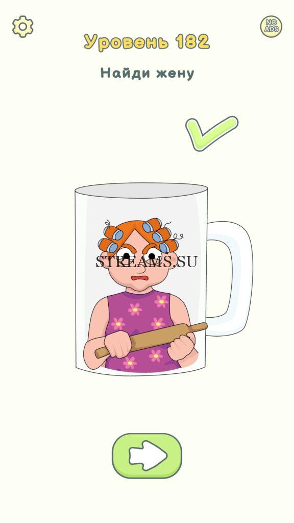 Найди жену. Уровень 182 — DOP 2: Delete One Part. Вы готовы к продолжению первой части игры? Тогда вперед! Эта игра DOP 2 (Расшифровка: Delete One Part) , которая отличается от первой части тем, что здесь нам нужно будет не дорисовывать предметы, а удалять или стирать их. Вас ждет множество хитроумных и интересных уровней. На первом этапе нам будут подсказывать, что нужно удали, но потом становится всё тяжелее и тяжелее решать головоломки. Разработчики постарались сделать игру привлекательной. Геймплей заставит вас просидеть за игрой очень долго. Красивая графика исполнения. Тренировка мозга и многое другое, всё это ждет нас в замечательной головоломке DOP 2. Если не получается пройти уровень, или зашли в тупик, то вы можете найти ответ на любой уровень на нашем сайте STREAMS.SU! Ответ на этот уровень находиться чуть ниже..