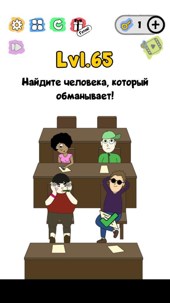 Найдите человека, который обманывает! 65 уровень Trick Me: логические головоломки — Это игра созданная в виде викторины. Каждый новый уровень отличается от предыдущего, что делает игровой процесс затягивающим и интересным. Если ты хочешь узнать насколько ты умный, тогда эта игра точно для тебя! Trick Me поможет тебе развить нестандартное мышление, и повысить свой IQ. В этой игре уже есть 236 уровней, которые постоянно обновляются и пополняются. Но если застрял на одном или нескольких уровнях, и не можешь их пройти, то наш сайт придет на помощь, у нас есть все ответы на уровни игры Trick Me.