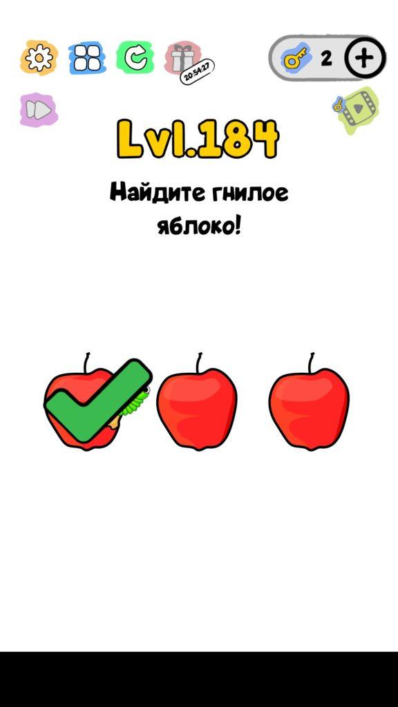 Найдите гнилое яблоко! 184 уровень Trick Me: логические головоломки — Это игра созданная в виде викторины. Каждый новый уровень отличается от предыдущего, что делает игровой процесс затягивающим и интересным. Если ты хочешь узнать насколько ты умный, тогда эта игра точно для тебя! Trick Me поможет тебе развить нестандартное мышление, и повысить свой IQ. В этой игре уже есть 236 уровней, которые постоянно обновляются и пополняются. Но если застрял на одном или нескольких уровнях, и не можешь их пройти, то наш сайт придет на помощь, у нас есть все ответы на уровни игры Trick Me.