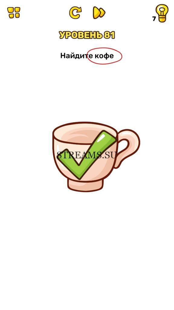 Найдите кофе. Уровень 81 — Brain Blow: Тест на гениальность — Ответ на этот уровень находится под фото. Очередная игра от популярных разработчиков головоломок CASUAL AZUR GAMES. Если вы хотите взорвать свой мозг и развить навыки нестандартного мышления, тогда игра Брейн Блоу определенно вам понравится. Если не получается решить задание, то попробуйте включить нестандартное мышление, тряхнуть телефон, погладить его или использовать больше пальцев. Эта игра способна развить в вас навыки следопыта, креативность и прокачать ваш IQ. Но, а если все-же не получается пройти уровень, найдите правильное решение на нашем сайте.