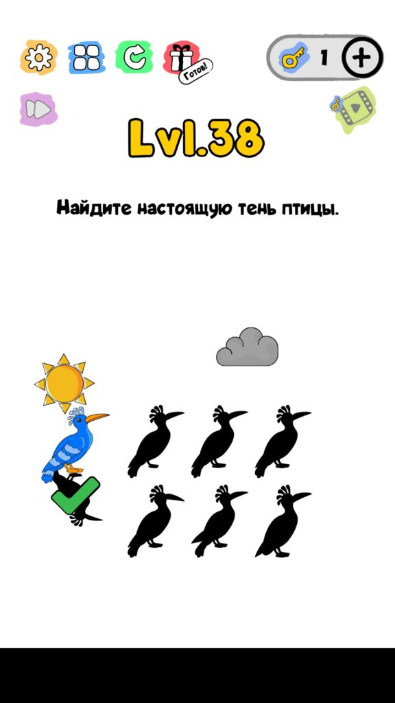 Найдите настоящую тень птицы. 38 уровень Trick Me: логические головоломки — Это игра созданная в виде викторины. Каждый новый уровень отличается от предыдущего, что делает игровой процесс затягивающим и интересным. Если ты хочешь узнать насколько ты умный, тогда эта игра точно для тебя! Trick Me поможет тебе развить нестандартное мышление, и повысить свой IQ. В этой игре уже есть 236 уровней, которые постоянно обновляются и пополняются. Но если застрял на одном или нескольких уровнях, и не можешь их пройти, то наш сайт придет на помощь, у нас есть все ответы на уровни игры Trick Me.