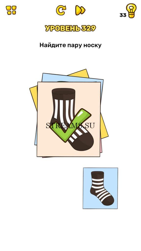 Найдите пару носку. Уровень 329 — Brain Blow: Тест на гениальность — Ответ на этот уровень находится под фото. Очередная игра от популярных разработчиков головоломок CASUAL AZUR GAMES. Если вы хотите взорвать свой мозг и развить навыки нестандартного мышления, тогда игра Брейн Блоу определенно вам понравится. Если не получается решить задание, то попробуйте включить нестандартное мышление, тряхнуть телефон, погладить его или использовать больше пальцев. Эта игра способна развить в вас навыки следопыта, креативность и прокачать ваш IQ. Но, а если все-же не получается пройти уровень, найдите правильное решение на нашем сайте.