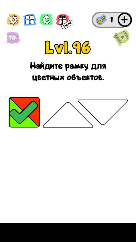 Найдите рамку для цветных объектов. 96 уровень Trick Me: логические головоломки — Это игра созданная в виде викторины. Каждый новый уровень отличается от предыдущего, что делает игровой процесс затягивающим и интересным. Если ты хочешь узнать насколько ты умный, тогда эта игра точно для тебя! Trick Me поможет тебе развить нестандартное мышление, и повысить свой IQ. В этой игре уже есть 236 уровней, которые постоянно обновляются и пополняются. Но если застрял на одном или нескольких уровнях, и не можешь их пройти, то наш сайт придет на помощь, у нас есть все ответы на уровни игры Trick Me.