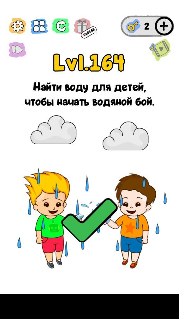 Найти воду для детей, чтобы начать водяной бой. 164 уровень Trick Me: логические головоломки — Это игра созданная в виде викторины. Каждый новый уровень отличается от предыдущего, что делает игровой процесс затягивающим и интересным. Если ты хочешь узнать насколько ты умный, тогда эта игра точно для тебя! Trick Me поможет тебе развить нестандартное мышление, и повысить свой IQ. В этой игре уже есть 236 уровней, которые постоянно обновляются и пополняются. Но если застрял на одном или нескольких уровнях, и не можешь их пройти, то наш сайт придет на помощь, у нас есть все ответы на уровни игры Trick Me.