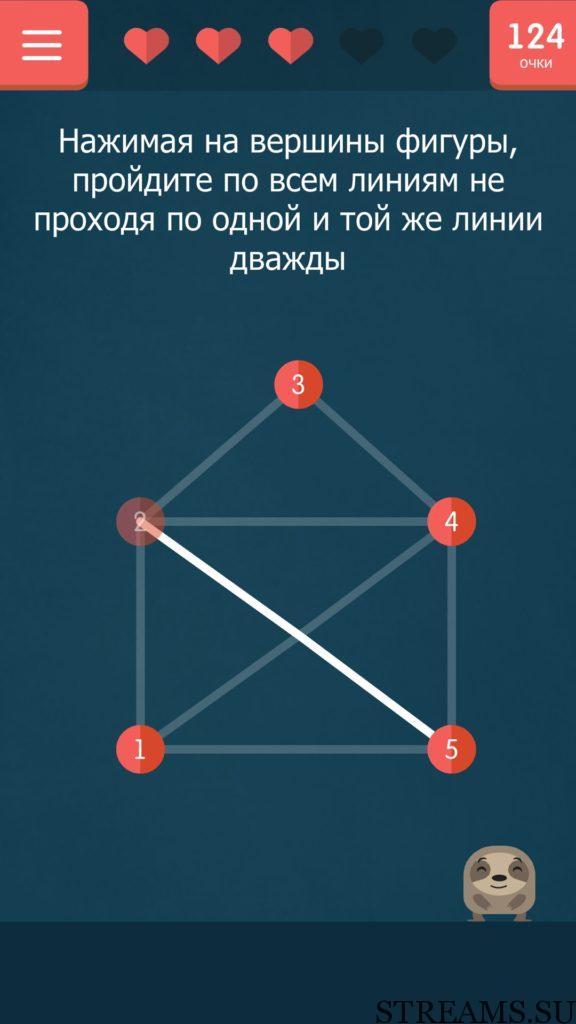 Нажимая на вершины фигуры, пройдите по всем линиям не проходя по одной и той же линии дважды. 58 уровень Каверзный тест (Tricky test) — игра от разработчиков студии NatGames. Если вам надоели наивные и простые задачки и головоломки, то эта игра определенно для вас! Нужно будет трясти, переворачивать, гладить свой телефон, чтобы пройти уровень. В описании игры написано, что 94% скачавших, не пройдут игру с первого раза. Чтобы исправить этот процент в меньшую сторону, мы предоставляем вам ответы на все уровни игры.