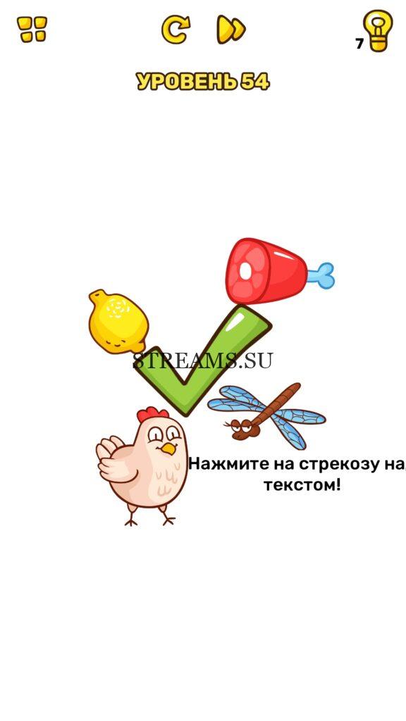 Нажмите на стрекозу над текстом! Уровень 54 — Brain Blow: Тест на гениальность — Ответ на этот уровень находится под фото. Очередная игра от популярных разработчиков головоломок CASUAL AZUR GAMES. Если вы хотите взорвать свой мозг и развить навыки нестандартного мышления, тогда игра Брейн Блоу определенно вам понравится. Если не получается решить задание, то попробуйте включить нестандартное мышление, тряхнуть телефон, погладить его или использовать больше пальцев. Эта игра способна развить в вас навыки следопыта, креативность и прокачать ваш IQ. Но, а если все-же не получается пройти уровень, найдите правильное решение на нашем сайте.