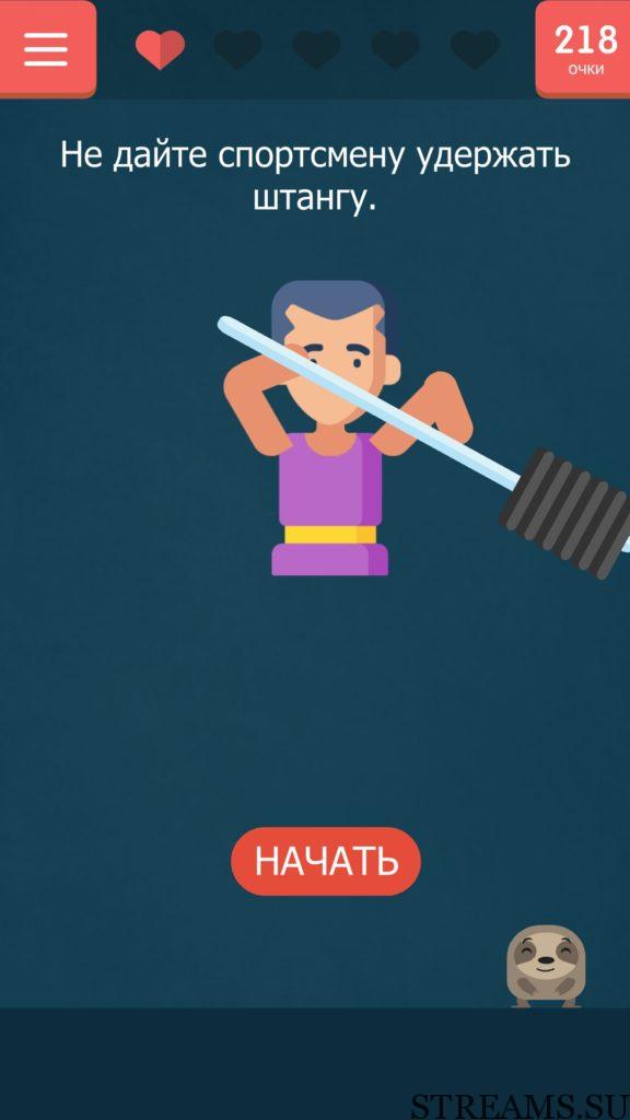 Не дайте спортсмену удержать штангу. 105 уровень Каверзный тест (Tricky test) — игра от разработчиков студии NatGames. Если вам надоели наивные и простые задачки и головоломки, то эта игра определенно для вас! Нужно будет трясти, переворачивать, гладить свой телефон, чтобы пройти уровень. В описании игры написано, что 94% скачавших, не пройдут игру с первого раза. Чтобы исправить этот процент в меньшую сторону, мы предоставляем вам ответы на все уровни игры.