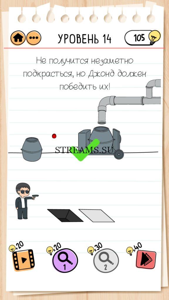Не получится незаметно подкрасться, но Джонд должен победить их! Уровень 14 — Brain Test 2 (Беймс Джонд и Ваня. Часть 2): Вторая часть замечательной игры уже здесь. Готовы к испытанию своего мозга на прочность? Тогда смело залетайте в эту головоломку. Здесь нас ждет непредсказуемые задачки, вопросы и головоломки, которые сразу и не получиться решить. Будьте готовы к вопросам с подвохом! Попробуйте решить все уровни. Эта головоломка построена по принципу историй. В каждой истории придется помогать кому-то решить бытовые вопросы; вычислить преступника; помочь похудеть. Это лишь некоторые эпизоды которые нас ожидают в этой игре. Очень красочная игра, которая понравится и вам и вашим друзьям. Если не получается пройти загадку, то на нашем сайте STREAMS.SU вы найдете решение любого уровня Brain Test 2!
