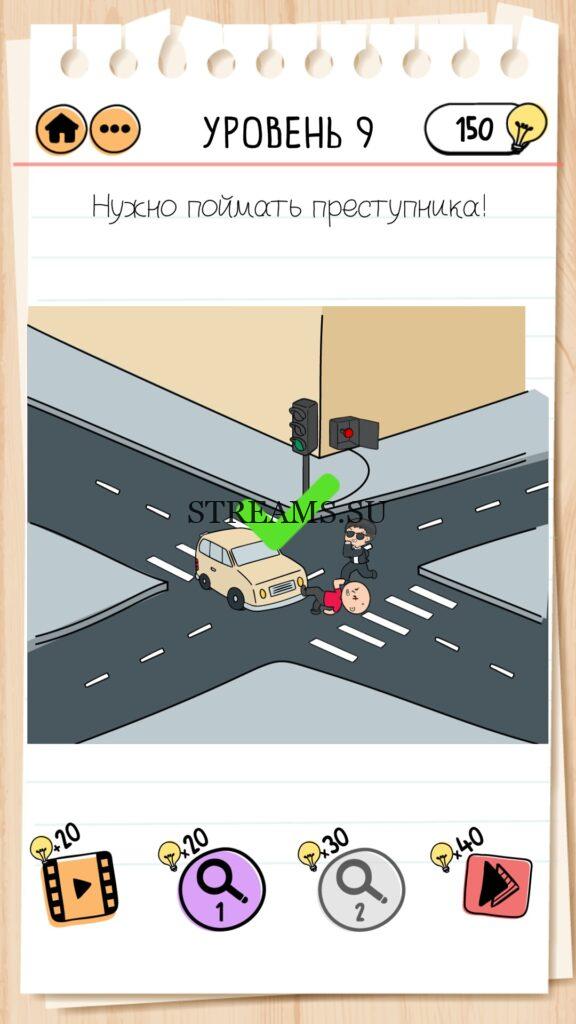 Нужно поймать преступника! Уровень 9 — Brain Test 2 (Агент Беймс Джонд): Вторая часть замечательной игры уже здесь. Готовы к испытанию своего мозга на прочность? Тогда смело залетайте в эту головоломку. Здесь нас ждет непредсказуемые задачки, вопросы и головоломки, которые сразу и не получиться решить. Будьте готовы к вопросам с подвохом! Попробуйте решить все уровни. Эта головоломка построена по принципу историй. В каждой истории придется помогать кому-то решить бытовые вопросы; вычислить преступника; помочь похудеть. Это лишь некоторые эпизоды которые нас ожидают в этой игре. Очень красочная игра, которая понравится и вам и вашим друзьям. Если не получается пройти загадку, то на нашем сайте STREAMS.SU вы найдете решение любого уровня Brain Test 2!