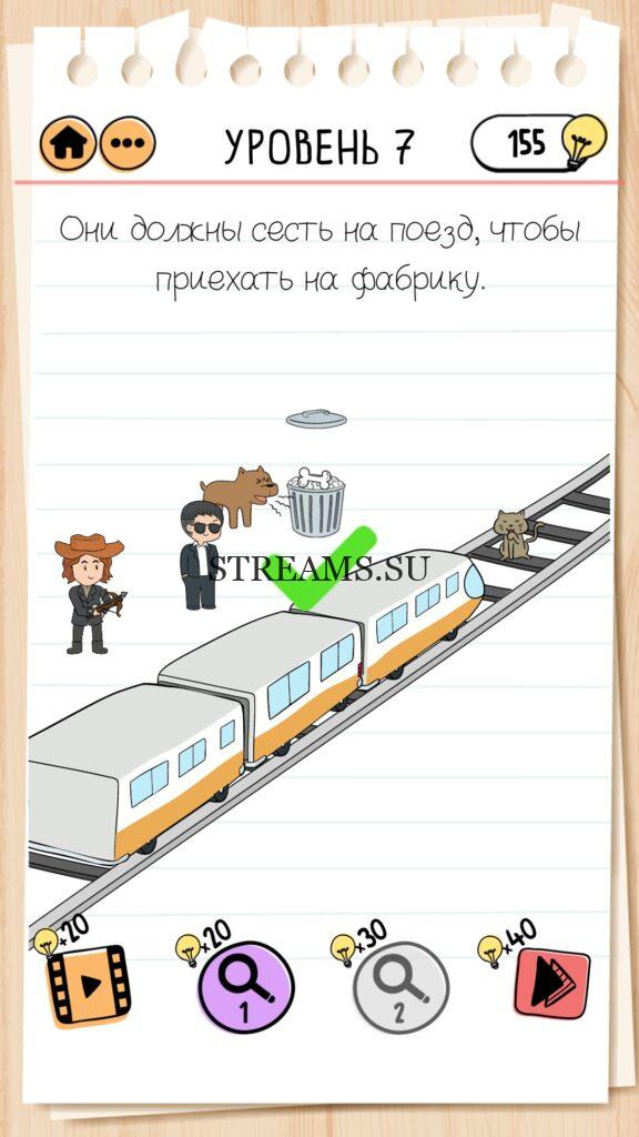 Они должны сесть на поезд, чтобы приехать на фабрику. Уровень 7 — Brain Test 2 (Беймс Джонд и Ваня. Часть 2): Вторая часть замечательной игры уже здесь. Готовы к испытанию своего мозга на прочность? Тогда смело залетайте в эту головоломку. Здесь нас ждет непредсказуемые задачки, вопросы и головоломки, которые сразу и не получиться решить. Будьте готовы к вопросам с подвохом! Попробуйте решить все уровни. Эта головоломка построена по принципу историй. В каждой истории придется помогать кому-то решить бытовые вопросы; вычислить преступника; помочь похудеть. Это лишь некоторые эпизоды которые нас ожидают в этой игре. Очень красочная игра, которая понравится и вам и вашим друзьям. Если не получается пройти загадку, то на нашем сайте STREAMS.SU вы найдете решение любого уровня Brain Test 2!