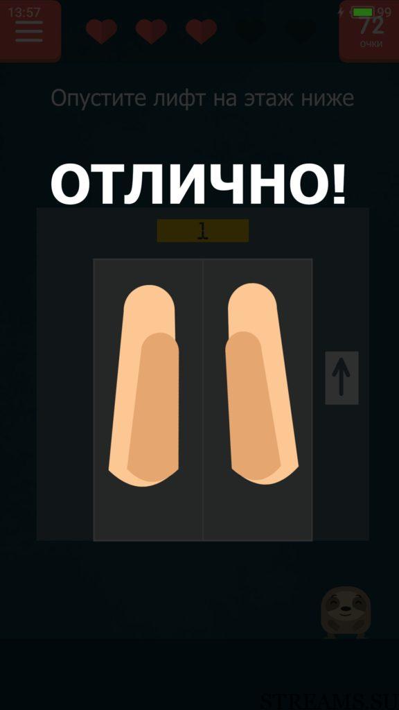 ОТВЕТ: Если перевернуть телефон вверх ногами, то можно будет нажать на кнопку и получится, что лифт поедет вниз