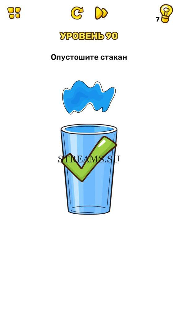 Опустошите стакан. Уровень 90 — Brain Blow: Тест на гениальность — Ответ на этот уровень находится под фото. Очередная игра от популярных разработчиков головоломок CASUAL AZUR GAMES. Если вы хотите взорвать свой мозг и развить навыки нестандартного мышления, тогда игра Брейн Блоу определенно вам понравится. Если не получается решить задание, то попробуйте включить нестандартное мышление, тряхнуть телефон, погладить его или использовать больше пальцев. Эта игра способна развить в вас навыки следопыта, креативность и прокачать ваш IQ. Но, а если все-же не получается пройти уровень, найдите правильное решение на нашем сайте.