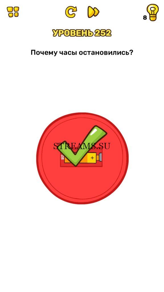 Почему часы остановились? Уровень 252 — Brain Blow: Тест на гениальность — Ответ на этот уровень находится под фото. Очередная игра от популярных разработчиков головоломок CASUAL AZUR GAMES. Если вы хотите взорвать свой мозг и развить навыки нестандартного мышления, тогда игра Брейн Блоу определенно вам понравится. Если не получается решить задание, то попробуйте включить нестандартное мышление, тряхнуть телефон, погладить его или использовать больше пальцев. Эта игра способна развить в вас навыки следопыта, креативность и прокачать ваш IQ. Но, а если все-же не получается пройти уровень, найдите правильное решение на нашем сайте.