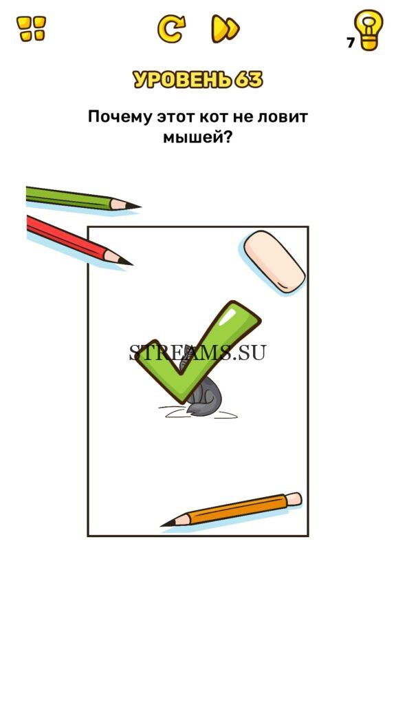 Почему этот кот не ловит мышей? Уровень 63 — Brain Blow: Тест на гениальность — Ответ на этот уровень находится под фото. Очередная игра от популярных разработчиков головоломок CASUAL AZUR GAMES. Если вы хотите взорвать свой мозг и развить навыки нестандартного мышления, тогда игра Брейн Блоу определенно вам понравится. Если не получается решить задание, то попробуйте включить нестандартное мышление, тряхнуть телефон, погладить его или использовать больше пальцев. Эта игра способна развить в вас навыки следопыта, креативность и прокачать ваш IQ. Но, а если все-же не получается пройти уровень, найдите правильное решение на нашем сайте.