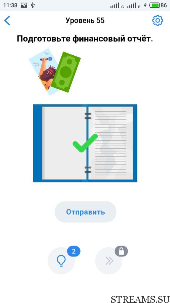 Подготовьте финансовый отчёт. 55 уровень Easy Game — это интересная но в тоже время сложная головоломка, которая заставит вас включить нестандартное мышление. Прокачайте свой мозг и IQ. Почувствуйте себя самым умным, решая захватывающие и заковыристые задачки. Разработчики Easybrain, обещают, что с помощью этой игры вы сможете развить творческие навыки. Но если не сможете пройти какой-нибудь из уровней, то воспользуйтесь ответами с нашего сайта.