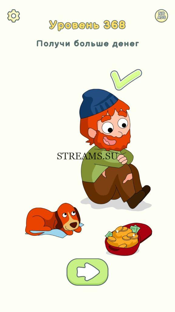 Получи больше денег. Уровень 368 — DOP 2: Delete One Part. Вы готовы к продолжению первой части игры? Тогда вперед! Эта игра DOP 2 (Расшифровка: Delete One Part) , которая отличается от первой части тем, что здесь нам нужно будет не дорисовывать предметы, а удалять или стирать их. Вас ждет множество хитроумных и интересных уровней. На первом этапе нам будут подсказывать, что нужно удали, но потом становится всё тяжелее и тяжелее решать головоломки. Разработчики постарались сделать игру привлекательной. Геймплей заставит вас просидеть за игрой очень долго. Красивая графика исполнения. Тренировка мозга и многое другое, всё это ждет нас в замечательной головоломке DOP 2. Если не получается пройти уровень, или зашли в тупик, то вы можете найти ответ на любой уровень на нашем сайте STREAMS.SU! Ответ на этот уровень находиться чуть ниже..