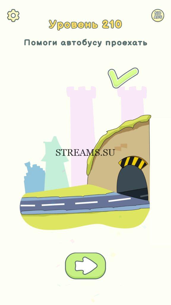 Помоги автобусу проехать. Уровень 210 — DOP 2: Delete One Part. Вы готовы к продолжению первой части игры? Тогда вперед! Эта игра DOP 2 (Расшифровка: Delete One Part) , которая отличается от первой части тем, что здесь нам нужно будет не дорисовывать предметы, а удалять или стирать их. Вас ждет множество хитроумных и интересных уровней. На первом этапе нам будут подсказывать, что нужно удали, но потом становится всё тяжелее и тяжелее решать головоломки. Разработчики постарались сделать игру привлекательной. Геймплей заставит вас просидеть за игрой очень долго. Красивая графика исполнения. Тренировка мозга и многое другое, всё это ждет нас в замечательной головоломке DOP 2. Если не получается пройти уровень, или зашли в тупик, то вы можете найти ответ на любой уровень на нашем сайте STREAMS.SU! Ответ на этот уровень находиться чуть ниже..