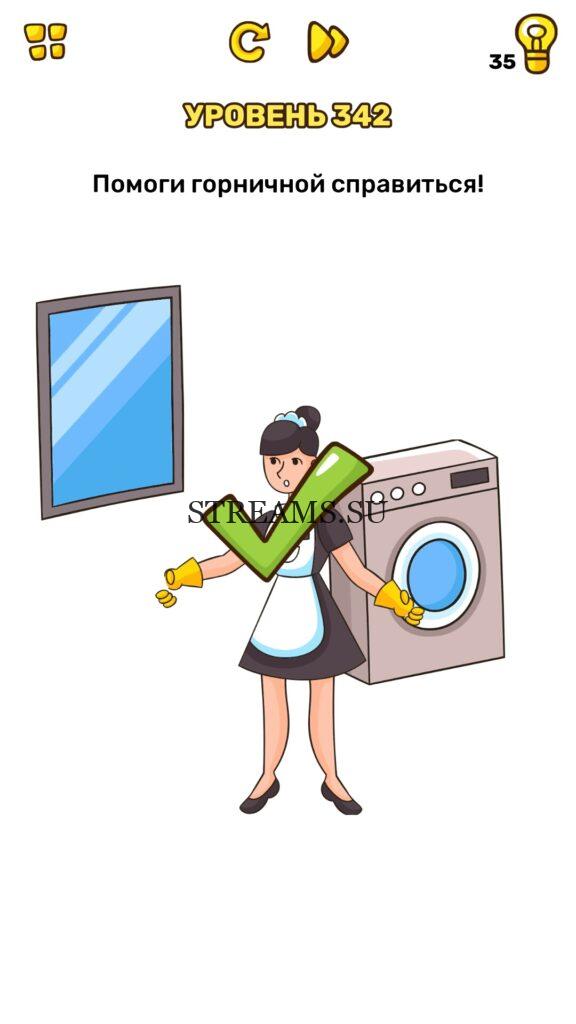 Помоги горничной справиться! Уровень 342 — Brain Blow: Тест на гениальность — Ответ на этот уровень находится под фото. Очередная игра от популярных разработчиков головоломок CASUAL AZUR GAMES. Если вы хотите взорвать свой мозг и развить навыки нестандартного мышления, тогда игра Брейн Блоу определенно вам понравится. Если не получается решить задание, то попробуйте включить нестандартное мышление, тряхнуть телефон, погладить его или использовать больше пальцев. Эта игра способна развить в вас навыки следопыта, креативность и прокачать ваш IQ. Но, а если все-же не получается пройти уровень, найдите правильное решение на нашем сайте.