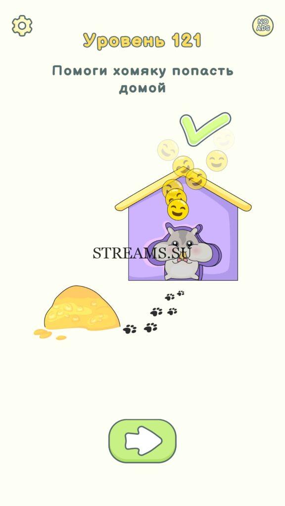 Помоги хомяку попасть домой. Уровень 121 — DOP 2: Delete One Part. Вы готовы к продолжению первой части игры? Тогда вперед! Эта игра DOP 2 (Расшифровка: Delete One Part) , которая отличается от первой части тем, что здесь нам нужно будет не дорисовывать предметы, а удалять или стирать их. Вас ждет множество хитроумных и интересных уровней. На первом этапе нам будут подсказывать, что нужно удали, но потом становится всё тяжелее и тяжелее решать головоломки. Разработчики постарались сделать игру привлекательной. Геймплей заставит вас просидеть за игрой очень долго. Красивая графика исполнения. Тренировка мозга и многое другое, всё это ждет нас в замечательной головоломке DOP 2. Если не получается пройти уровень, или зашли в тупик, то вы можете найти ответ на любой уровень на нашем сайте STREAMS.SU! Ответ на этот уровень находиться чуть ниже..