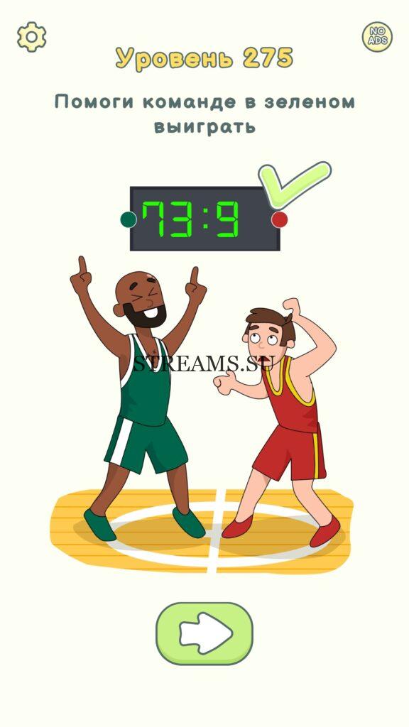 Помоги команде в зелёном выиграть. Уровень 275 — DOP 2: Delete One Part. Вы готовы к продолжению первой части игры? Тогда вперед! Эта игра DOP 2 (Расшифровка: Delete One Part) , которая отличается от первой части тем, что здесь нам нужно будет не дорисовывать предметы, а удалять или стирать их. Вас ждет множество хитроумных и интересных уровней. На первом этапе нам будут подсказывать, что нужно удали, но потом становится всё тяжелее и тяжелее решать головоломки. Разработчики постарались сделать игру привлекательной. Геймплей заставит вас просидеть за игрой очень долго. Красивая графика исполнения. Тренировка мозга и многое другое, всё это ждет нас в замечательной головоломке DOP 2. Если не получается пройти уровень, или зашли в тупик, то вы можете найти ответ на любой уровень на нашем сайте STREAMS.SU! Ответ на этот уровень находиться чуть ниже..