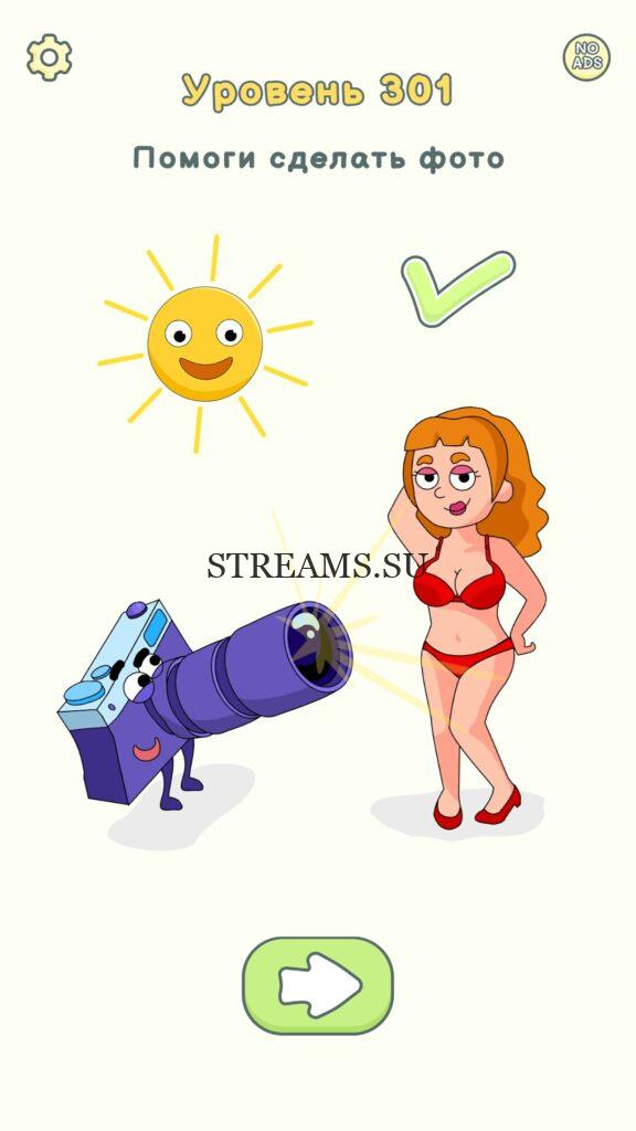 Помоги сделать фото. Уровень 301 — DOP 2: Delete One Part. Вы готовы к продолжению первой части игры? Тогда вперед! Эта игра DOP 2 (Расшифровка: Delete One Part) , которая отличается от первой части тем, что здесь нам нужно будет не дорисовывать предметы, а удалять или стирать их. Вас ждет множество хитроумных и интересных уровней. На первом этапе нам будут подсказывать, что нужно удали, но потом становится всё тяжелее и тяжелее решать головоломки. Разработчики постарались сделать игру привлекательной. Геймплей заставит вас просидеть за игрой очень долго. Красивая графика исполнения. Тренировка мозга и многое другое, всё это ждет нас в замечательной головоломке DOP 2. Если не получается пройти уровень, или зашли в тупик, то вы можете найти ответ на любой уровень на нашем сайте STREAMS.SU! Ответ на этот уровень находиться чуть ниже..