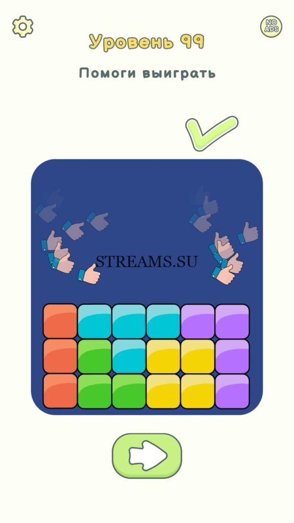 Помоги выиграть. Уровень 99 — DOP 2: Delete One Part. Вы готовы к продолжению первой части игры? Тогда вперед! Эта игра DOP 2 (Расшифровка: Delete One Part) , которая отличается от первой части тем, что здесь нам нужно будет не дорисовывать предметы, а удалять или стирать их. Вас ждет множество хитроумных и интересных уровней. На первом этапе нам будут подсказывать, что нужно удали, но потом становится всё тяжелее и тяжелее решать головоломки. Разработчики постарались сделать игру привлекательной. Геймплей заставит вас просидеть за игрой очень долго. Красивая графика исполнения. Тренировка мозга и многое другое, всё это ждет нас в замечательной головоломке DOP 2. Если не получается пройти уровень, или зашли в тупик, то вы можете найти ответ на любой уровень на нашем сайте STREAMS.SU! Ответ на этот уровень находиться чуть ниже..
