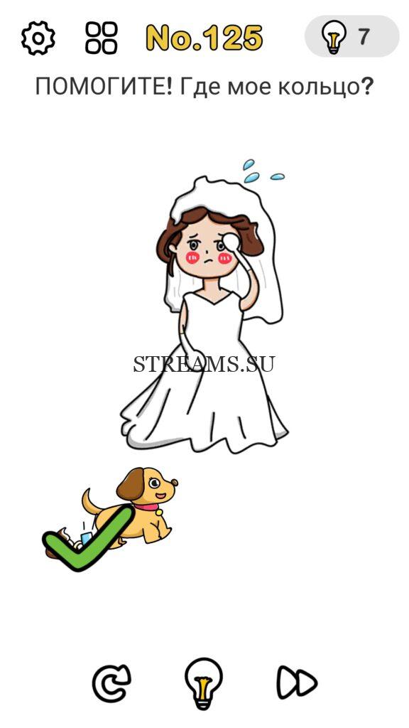 ПОМОГИТЕ! Где моё кольцо? Уровень 125 — Brain Out: Ответ на этот уровень находится чуть ниже. Всегда было интересно узнать каков твой IQ? Эта игра поможет тебе узнать ответ на этот вопрос! В ней встречаются как логические загадки, так и не очень. С помощью этой интересной головоломки вы сможете развить нестандартное мышление, креативность, воображение а также улучшить способность запоминать. Некоторые решения задач, могут показаться абсурдными. Играйте в Brain Out с друзьями и родственниками. А если у вас не получается пройти один или несколько уровней, вы можете воспользоваться подсказками с нашего сайта.