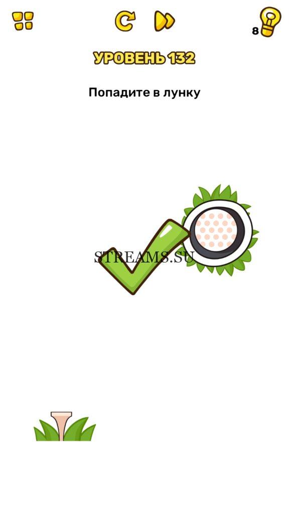Попадите в лунку. Уровень 132 — Brain Blow: Тест на гениальность — Ответ на этот уровень находится под фото. Очередная игра от популярных разработчиков головоломок CASUAL AZUR GAMES. Если вы хотите взорвать свой мозг и развить навыки нестандартного мышления, тогда игра Брейн Блоу определенно вам понравится. Если не получается решить задание, то попробуйте включить нестандартное мышление, тряхнуть телефон, погладить его или использовать больше пальцев. Эта игра способна развить в вас навыки следопыта, креативность и прокачать ваш IQ. Но, а если все-же не получается пройти уровень, найдите правильное решение на нашем сайте.