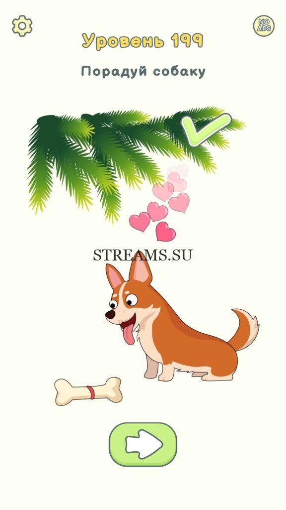 Порадуй собаку. Уровень 199 — DOP 2: Delete One Part. Вы готовы к продолжению первой части игры? Тогда вперед! Эта игра DOP 2 (Расшифровка: Delete One Part) , которая отличается от первой части тем, что здесь нам нужно будет не дорисовывать предметы, а удалять или стирать их. Вас ждет множество хитроумных и интересных уровней. На первом этапе нам будут подсказывать, что нужно удали, но потом становится всё тяжелее и тяжелее решать головоломки. Разработчики постарались сделать игру привлекательной. Геймплей заставит вас просидеть за игрой очень долго. Красивая графика исполнения. Тренировка мозга и многое другое, всё это ждет нас в замечательной головоломке DOP 2. Если не получается пройти уровень, или зашли в тупик, то вы можете найти ответ на любой уровень на нашем сайте STREAMS.SU! Ответ на этот уровень находиться чуть ниже..