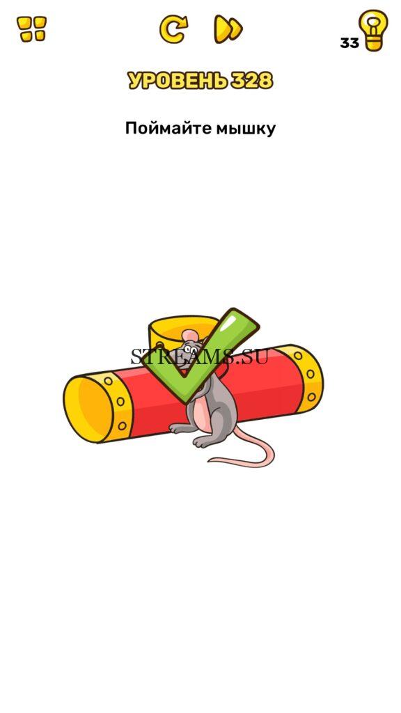 Поймайте мышку. Уровень 328 — Brain Blow: Тест на гениальность — Ответ на этот уровень находится под фото. Очередная игра от популярных разработчиков головоломок CASUAL AZUR GAMES. Если вы хотите взорвать свой мозг и развить навыки нестандартного мышления, тогда игра Брейн Блоу определенно вам понравится. Если не получается решить задание, то попробуйте включить нестандартное мышление, тряхнуть телефон, погладить его или использовать больше пальцев. Эта игра способна развить в вас навыки следопыта, креативность и прокачать ваш IQ. Но, а если все-же не получается пройти уровень, найдите правильное решение на нашем сайте.