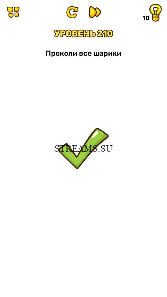 Проколи все шарики. Уровень 210 — Brain Blow: Тест на гениальность — Ответ на этот уровень находится под фото. Очередная игра от популярных разработчиков головоломок CASUAL AZUR GAMES. Если вы хотите взорвать свой мозг и развить навыки нестандартного мышления, тогда игра Брейн Блоу определенно вам понравится. Если не получается решить задание, то попробуйте включить нестандартное мышление, тряхнуть телефон, погладить его или использовать больше пальцев. Эта игра способна развить в вас навыки следопыта, креативность и прокачать ваш IQ. Но, а если все-же не получается пройти уровень, найдите правильное решение на нашем сайте.