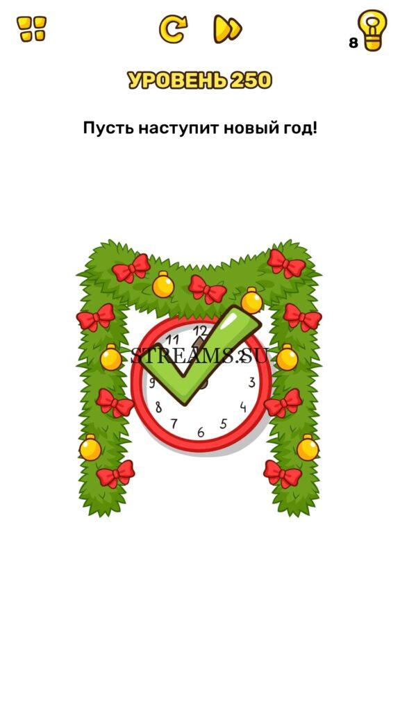 Пусть наступит новый год! Уровень 250 — Brain Blow: Тест на гениальность — Ответ на этот уровень находится под фото. Очередная игра от популярных разработчиков головоломок CASUAL AZUR GAMES. Если вы хотите взорвать свой мозг и развить навыки нестандартного мышления, тогда игра Брейн Блоу определенно вам понравится. Если не получается решить задание, то попробуйте включить нестандартное мышление, тряхнуть телефон, погладить его или использовать больше пальцев. Эта игра способна развить в вас навыки следопыта, креативность и прокачать ваш IQ. Но, а если все-же не получается пройти уровень, найдите правильное решение на нашем сайте.