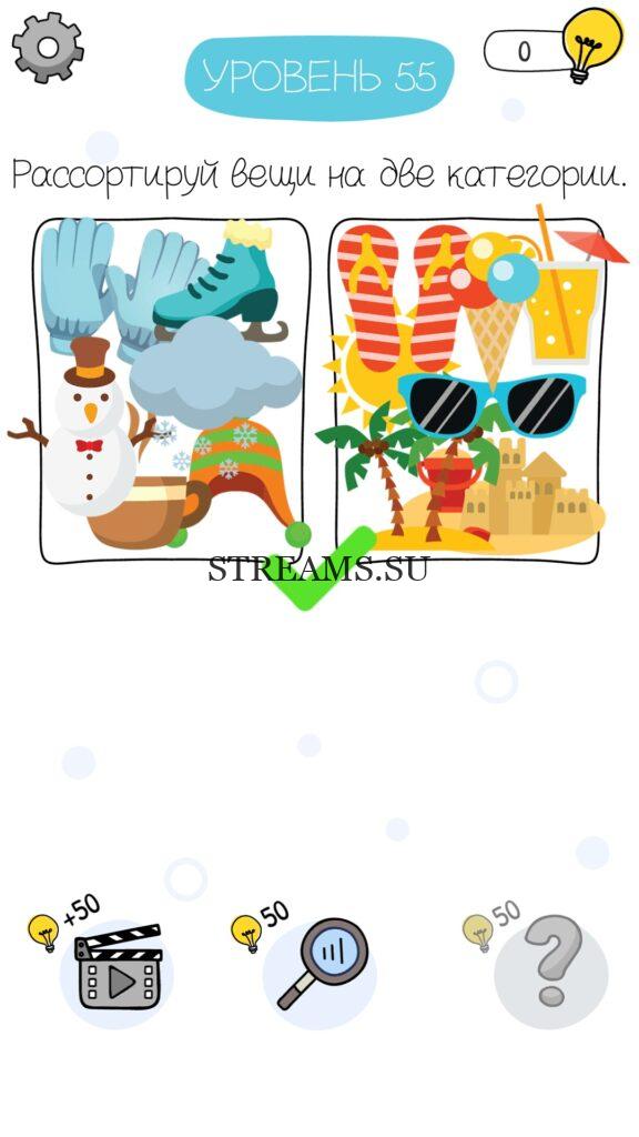 Рассортируй вещи на две категории. Уровень 55 — Who is? Головоломки и загадки — это уникальная головоломка, с которой не соскучишься! Если вам понравились такие игры как Brain Test и вторая её часть, то вам придется по вкусу и эта игра. С помощью подсказок, которые нам предстоит найти, нужно проходить уровень за уровнем. С каждым уровнем сложность отгадки будет расти. Поэтому приготовьтесь попотеть, чтобы пройти все уровни. Преимущества этой игры в том, что она работает без интернета! Если у вас не получается пройти один из уровней, то не отчаивайтесь. Вы всегда сможете найти ответы к игре Who is? на нашем замечательном сайте!