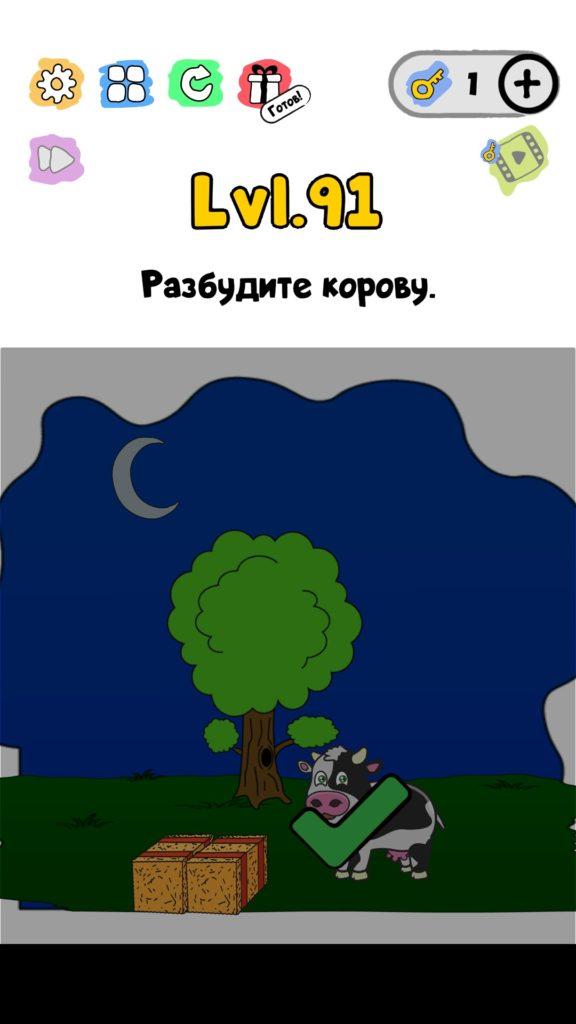 Разбудите корову. 91 уровень Trick Me: логические головоломки — Это игра созданная в виде викторины. Каждый новый уровень отличается от предыдущего, что делает игровой процесс затягивающим и интересным. Если ты хочешь узнать насколько ты умный, тогда эта игра точно для тебя! Trick Me поможет тебе развить нестандартное мышление, и повысить свой IQ. В этой игре уже есть 236 уровней, которые постоянно обновляются и пополняются. Но если застрял на одном или нескольких уровнях, и не можешь их пройти, то наш сайт придет на помощь, у нас есть все ответы на уровни игры Trick Me.