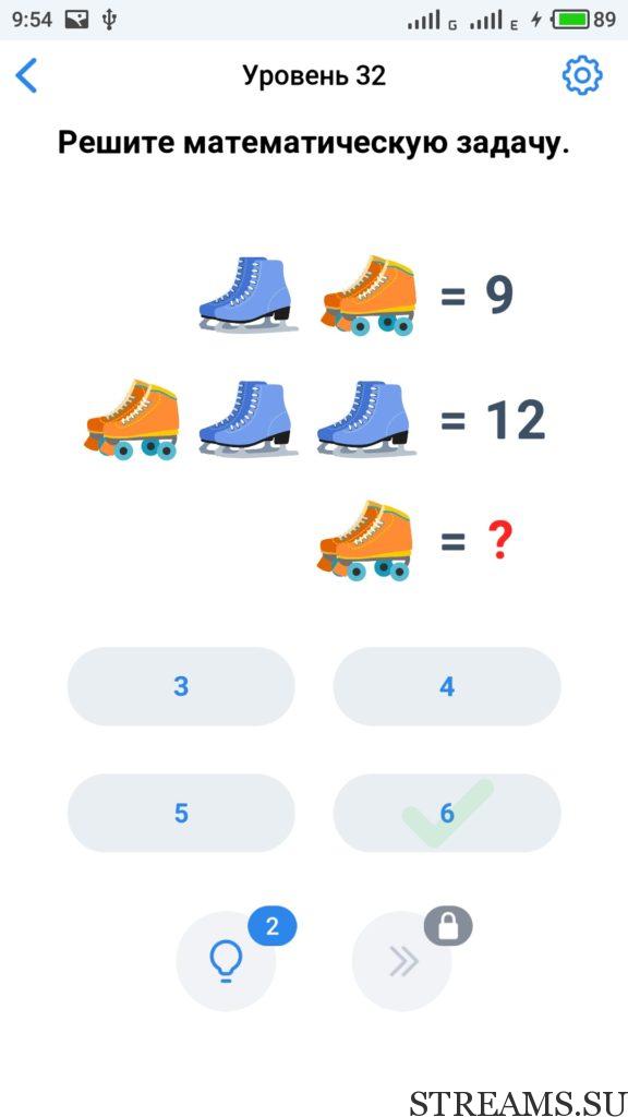 Решите математическую задачу. 32 уровень Easy Game — это интересная но в тоже время сложная головоломка, которая заставит вас включить нестандартное мышление. Прокачайте свой мозг и IQ. Почувствуйте себя самым умным, решая захватывающие и заковыристые задачки. Разработчики Easybrain, обещают, что с помощью этой игры вы сможете развить творческие навыки. Но если не сможете пройти какой-нибудь из уровней, то воспользуйтесь ответами с нашего сайта.