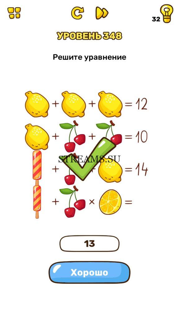 Решите уравнение. Уровень 348 — Brain Blow: Тест на гениальность — Ответ на этот уровень находится под фото. Очередная игра от популярных разработчиков головоломок CASUAL AZUR GAMES. Если вы хотите взорвать свой мозг и развить навыки нестандартного мышления, тогда игра Брейн Блоу определенно вам понравится. Если не получается решить задание, то попробуйте включить нестандартное мышление, тряхнуть телефон, погладить его или использовать больше пальцев. Эта игра способна развить в вас навыки следопыта, креативность и прокачать ваш IQ. Но, а если все-же не получается пройти уровень, найдите правильное решение на нашем сайте.