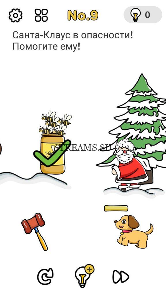 Санта-Клаус в опасности! Помоги ему! (В поисках Санты) Уровень 9 — Brain Out: Ответ на этот уровень находится чуть ниже. Всегда было интересно узнать каков твой IQ? Эта игра поможет тебе узнать ответ на этот вопрос! В ней встречаются как логические загадки, так и не очень. С помощью этой интересной головоломки вы сможете развить нестандартное мышление, креативность, воображение а также улучшить способность запоминать. Некоторые решения задач, могут показаться абсурдными. Играйте в Brain Out с друзьями и родственниками. А если у вас не получается пройти один или несколько уровней, вы можете воспользоваться подсказками с нашего сайта.