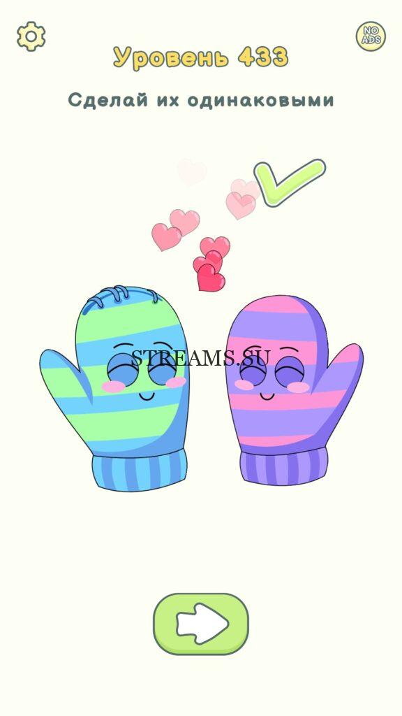 Сделай их одинаковыми. Уровень 433 — DOP 2: Delete One Part. Вы готовы к продолжению первой части игры? Тогда вперед! Эта игра DOP 2 (Расшифровка: Delete One Part) , которая отличается от первой части тем, что здесь нам нужно будет не дорисовывать предметы, а удалять или стирать их. Вас ждет множество хитроумных и интересных уровней. На первом этапе нам будут подсказывать, что нужно удали, но потом становится всё тяжелее и тяжелее решать головоломки. Разработчики постарались сделать игру привлекательной. Геймплей заставит вас просидеть за игрой очень долго. Красивая графика исполнения. Тренировка мозга и многое другое, всё это ждет нас в замечательной головоломке DOP 2. Если не получается пройти уровень, или зашли в тупик, то вы можете найти ответ на любой уровень на нашем сайте STREAMS.SU! Ответ на этот уровень находиться чуть ниже..
