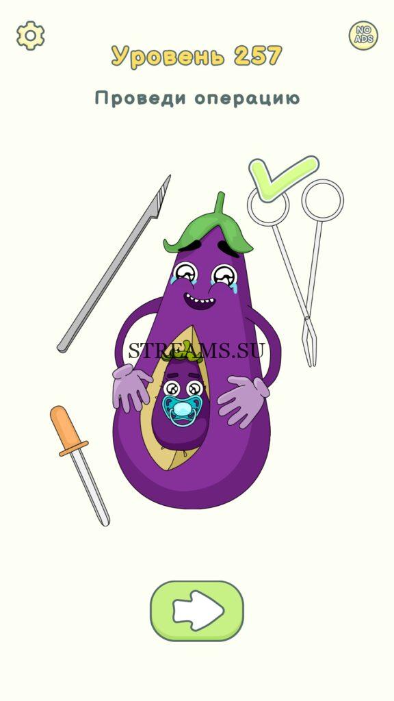 Сделайте операцию. Уровень 257 — DOP 2: Delete One Part. Вы готовы к продолжению первой части игры? Тогда вперед! Эта игра DOP 2 (Расшифровка: Delete One Part) , которая отличается от первой части тем, что здесь нам нужно будет не дорисовывать предметы, а удалять или стирать их. Вас ждет множество хитроумных и интересных уровней. На первом этапе нам будут подсказывать, что нужно удали, но потом становится всё тяжелее и тяжелее решать головоломки. Разработчики постарались сделать игру привлекательной. Геймплей заставит вас просидеть за игрой очень долго. Красивая графика исполнения. Тренировка мозга и многое другое, всё это ждет нас в замечательной головоломке DOP 2. Если не получается пройти уровень, или зашли в тупик, то вы можете найти ответ на любой уровень на нашем сайте STREAMS.SU! Ответ на этот уровень находиться чуть ниже..