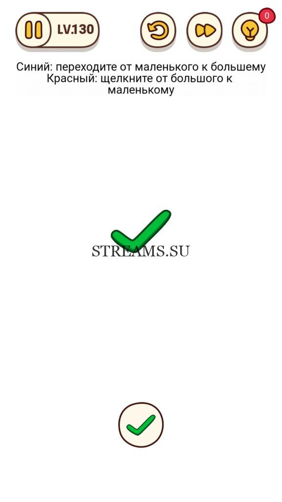 Синий и красный. Уровень 130 — Brain Find – уникальная игра в жанре «головоломка», ответ находится чуть ниже. Она имеет множество уровней и подуровней, которые весело проходить, без особых усилий и траты нервов. Игра нравится многим пользователям из-за приятного музыкального ряда, сопровождающегося весь игровой процесс. Тонко выполненной анимации и красивой графики, над которой поработали разработчики и вложили душу. Уникальность проекта состоит в том, что можно поворачивать экран на некоторых заданиях, увеличивать громкость динамика. То есть, всецело взаимодействовать не только с дисплеем, но и со всем мобильным устройством. На данный момент таких игр мало и не все они доступны в бесплатной версии! Brain Find переведена на русский язык. На нашем сайте, можно получить подсказки, если не получается пройти дальше.