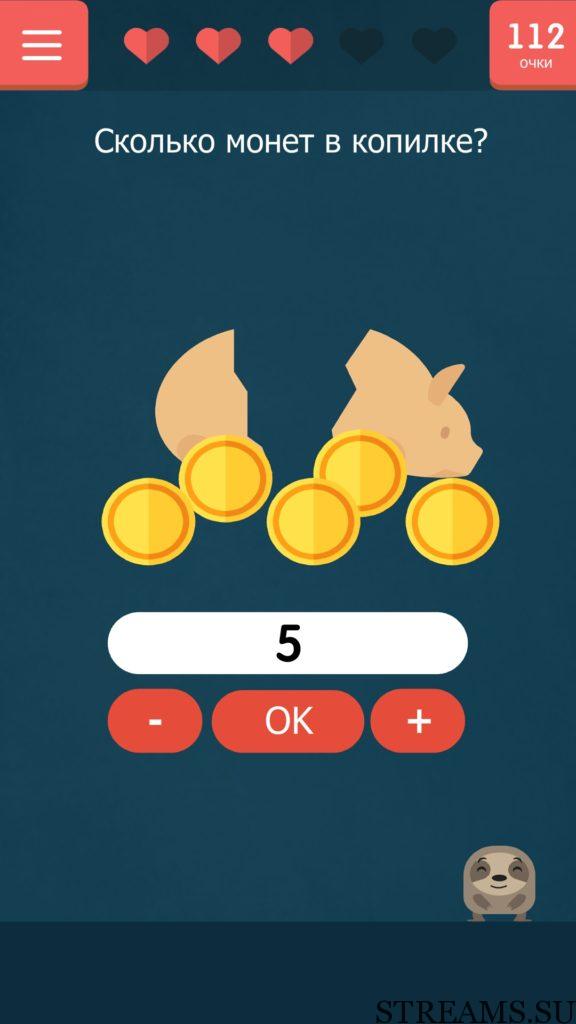 ОТВЕТ: Стукните пальцем по копилке несколько раз, тогда вы найдете в ней всего 5 монет
