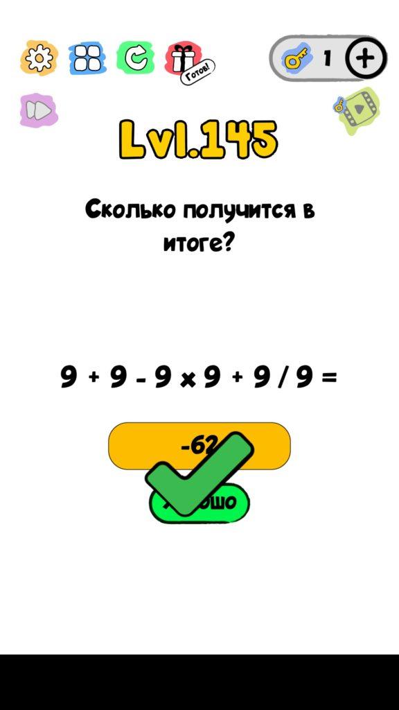 Сколько получится в итоге? 145 уровень Trick Me: логические головоломки — Это игра созданная в виде викторины. Каждый новый уровень отличается от предыдущего, что делает игровой процесс затягивающим и интересным. Если ты хочешь узнать насколько ты умный, тогда эта игра точно для тебя! Trick Me поможет тебе развить нестандартное мышление, и повысить свой IQ. В этой игре уже есть 236 уровней, которые постоянно обновляются и пополняются. Но если застрял на одном или нескольких уровнях, и не можешь их пройти, то наш сайт придет на помощь, у нас есть все ответы на уровни игры Trick Me.