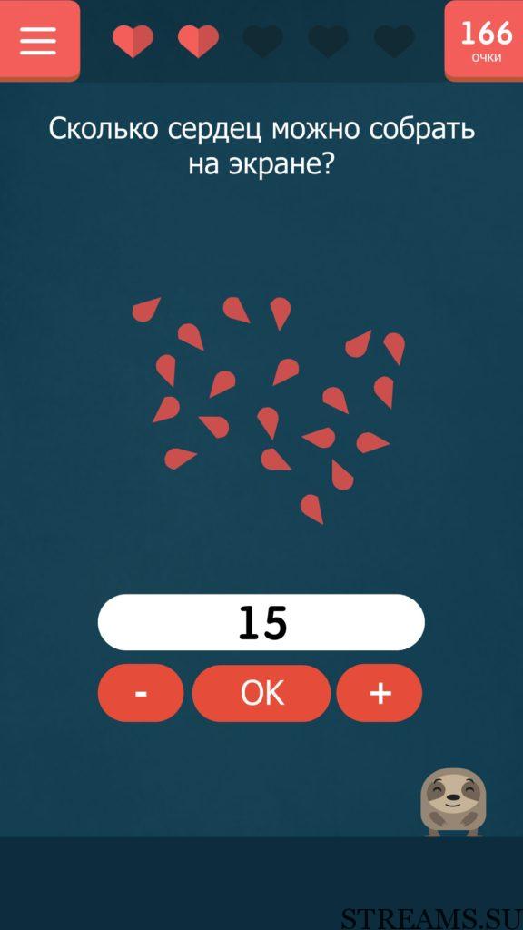 Сколько сердец можно собрать на экране? 79 уровень Каверзный тест (Tricky test) — игра от разработчиков студии NatGames. Если вам надоели наивные и простые задачки и головоломки, то эта игра определенно для вас! Нужно будет трясти, переворачивать, гладить свой телефон, чтобы пройти уровень. В описании игры написано, что 94% скачавших, не пройдут игру с первого раза. Чтобы исправить этот процент в меньшую сторону, мы предоставляем вам ответы на все уровни игры.